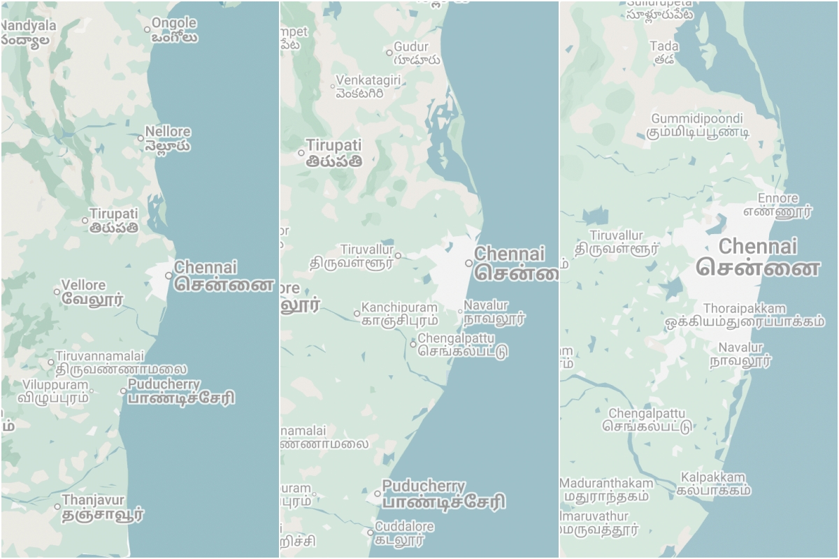 The scale question is reminiscent of the coastline paradox: no well-defined landmass has a coast of well-defined length, yet the coast exists at all points along the edge of the landmass. This weirdness arises because the length depends on the scale at which you measure it. If you look at the India map zoomed out to 1:10,000,000 — like on Google Maps on your laptop screen — the coast shows some features but smooths over others because your laptop's screen doesn't have enough pixels to capture those smaller than a particular size. If you zoomed in further, say to 1:1,000,000, you'd find more features because there are more pixels now for a certain number of features, and smaller variations in the shape of the coast show up. If you zoomed in further, even smaller variations would show up, and so on.