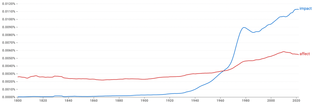 A journalist who relies too heavily on one word also risks blunting the edge. Consider, for example, the widespread use of the word 'impact'. It was once a straightforward noun referring to a collision or perhaps a decisive effect. Now it appears in nearly every context — "social impact", "economic impact", "climate impact", "emotional impact" — and has as a result been deprived of the sense of force it once had.